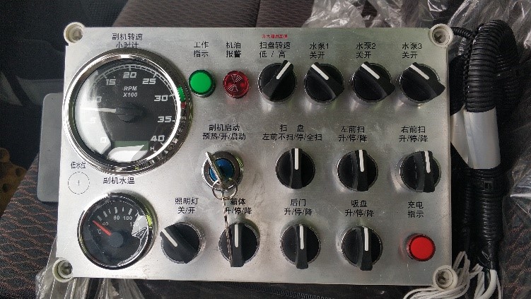 该扫路车采用东风多利卡(轴距3308)国VI二类底盘改装,加装副发动机、风机、 清水箱、垃圾箱、左右立扫、后置吸盘,扫盘降尘系统,液压系统、专用装置电控系统和副车架等改装而成(可加装前冲后洒)。